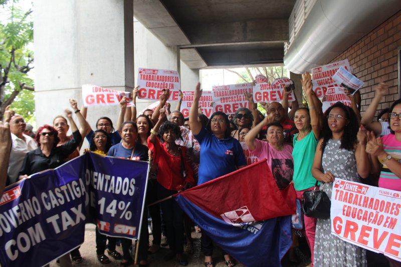 Sempre aguerridos e coesos, os/as trabalhadores/as não se inibiram diante das tentativas de cerceamento e intimidações do aparato policial disposto na Alepi e realizaram a sua manifestação com o vigor da revolta contra o massacre que o governo Wellington Dias quer perpetuar contra a categoria.