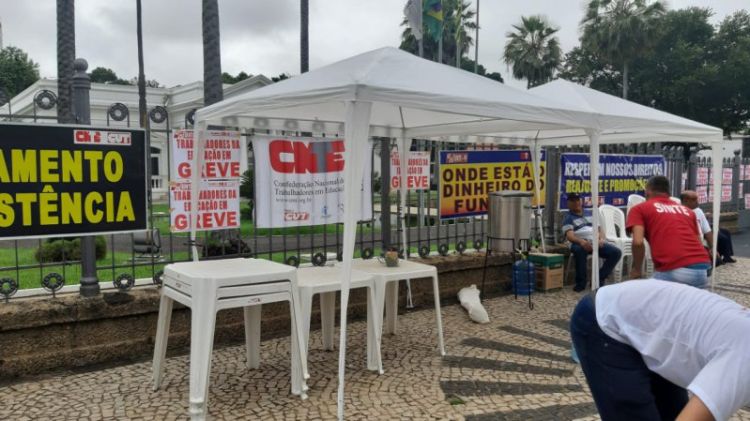 Dia 04/03 inicia o Acampamento da Resistência em frente aso Palácio de Karnak, das 8h às 17h diariamente. A categoria irá se revezar no acampamento e nas visitas às escolas.