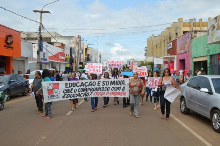 Ao longo da caminhada, alunos e professores entregaram aos populares uma carta aberta aos piauienses, onde relatam a luta dos 40 mil educadores filiados ao Sinte no movimento grevista, iniciado no último dia 10 de fevereiro.