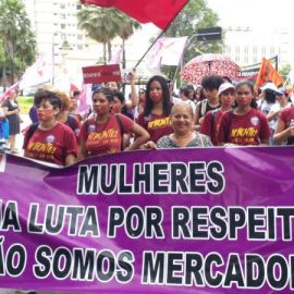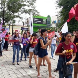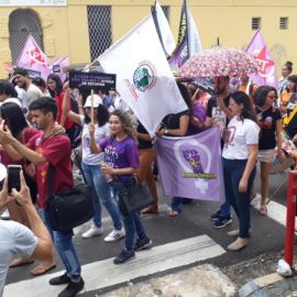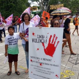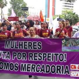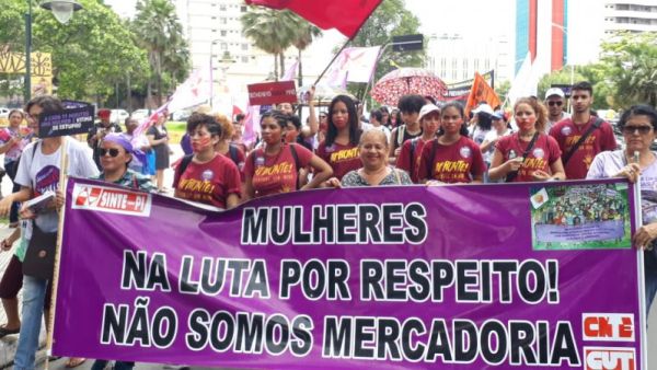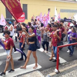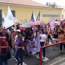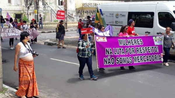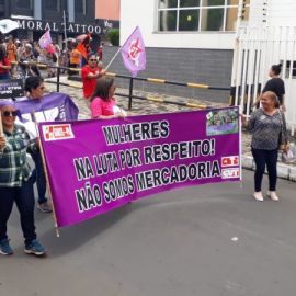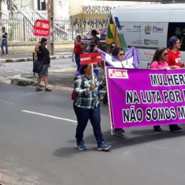Norteadas pelo combate a violência contra as mulheres, culminando com o repúdio ao feminicídio. Ao mesmo tempo, durante a concentração e na passeata, assim como no “Acampamento da Resistência”, montado pelas trabalhadoras e trabalhadores da educação da rede estadual em greve, foi assinalando o desmonte, pelo governo Bolsonaro, das políticas públicas direcionadas as questões de gênero.