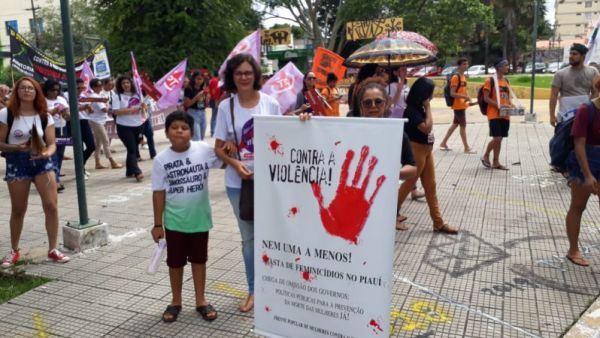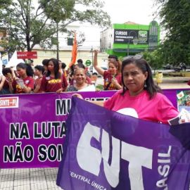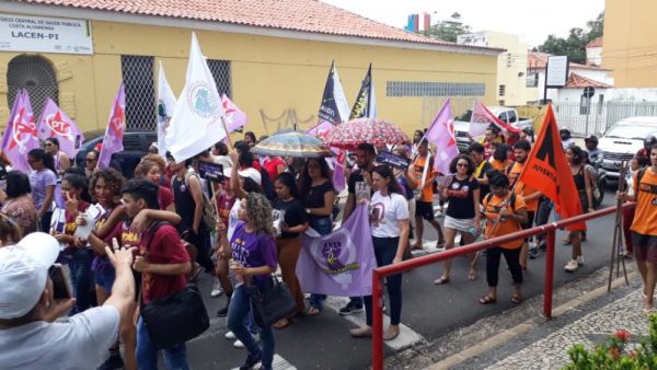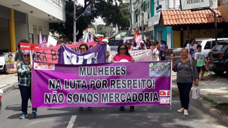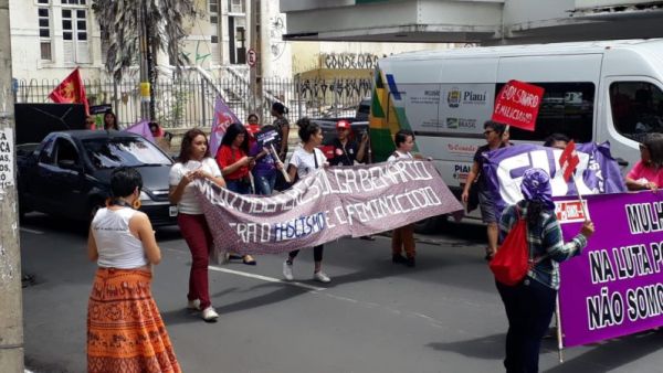 Na manhã desta segunda-feira (9), mulheres de diversas entidades que atuam no combate ao preconceito de gênero, entre as quais a Central Única dos Trabalhadores, Frente Popular de Mulheres Contra o Feminicídio, Núcleo Marielle Franco, Sinte-Piauí, Afronte e o Movimento de Mulheres Olga Benário, protagonizaram uma ação em referência ao Dia Internacional da Mulher.
