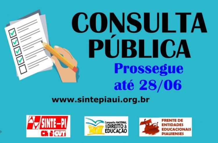 O SINTE-PI, em parceria com o Comitê Piauí da Campanha Nacional do Direito a Educação e a Frente de Entidades Educacionais Piauienses ampliaram o tempo da Consulta Pública sobre as aulas remotas no Piauí durante a pandemia do novo coronavírus. A pesquisa seguirá até dia 28 de junho.