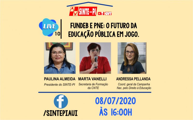 A 10ª edição das Lives realizadas pelo SINTE-PI abordará o futuro da educação pública brasileira. Fundeb e Plano Nacional de Educação (PNE) estão no foco do debate desta quarta-feira (08/07), a partir das 16h no fabebook/sintepiaui.