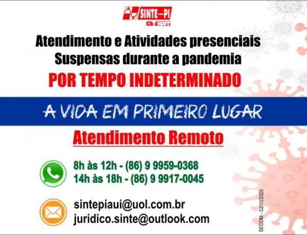 • Sinte-PI permanecerá fechado por tempo indeterminado enquanto durar a pandemia