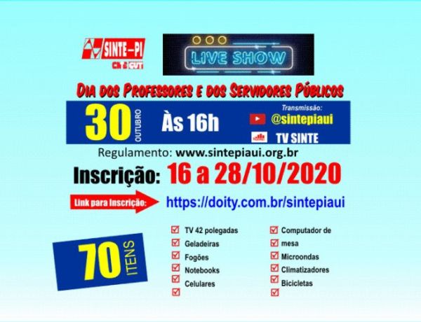 • Live Show do SINTE sorteará 70 prêmios para os associados