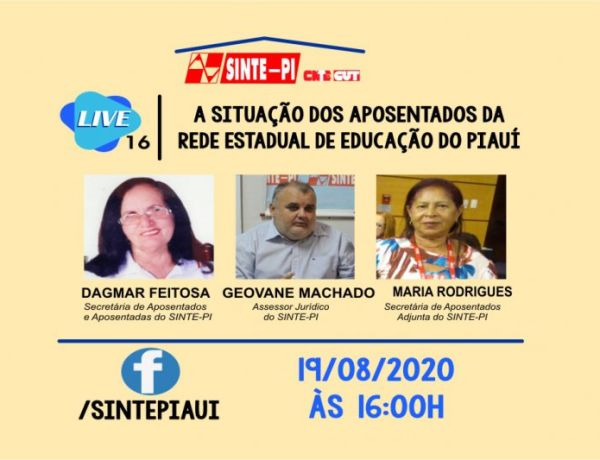 Quarta-feira (12/08), às 16h, pelo facebook/SintePi