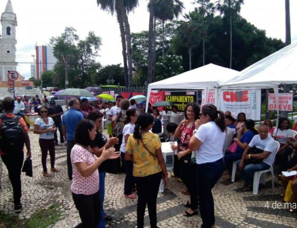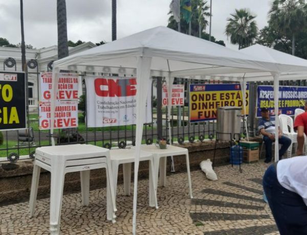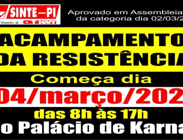 Trabalhadoras e trabalhadores em educação básica pública do Piauí montam acampamento em frente ao Palácio de Karnak em protesto pelo não reajuste em 2019 e 2020, pela precariedade da merenda e