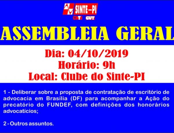 Assembleia dia 4/10.discutirá Fundef e deliberará posição em relação a acordo com governo estadual
