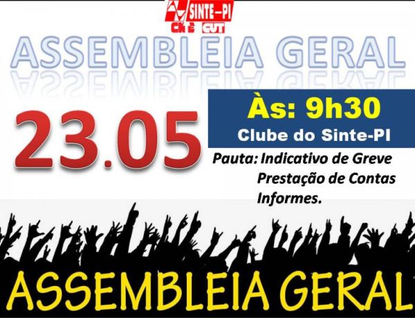Será dia 23 de maio, às 9h30 no Clube do Sinte-PI. Participe!