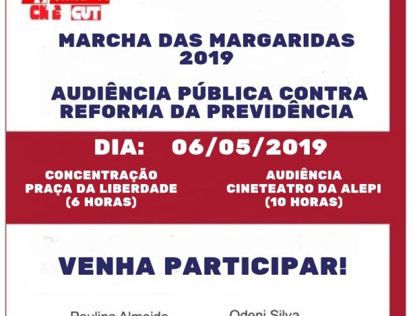 “Margaridas na Luta por um Brasil com soberania popular, democracia, justiça, igualdade e livre de violência” Marcha das Margaridas, 13 e14 de agosto de 2019, Brasília/DF. #RumoAMarchaDasMar