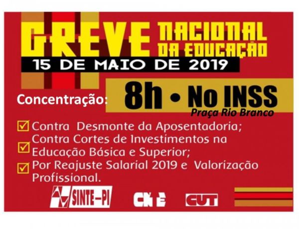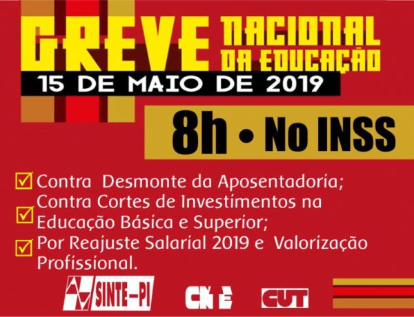 Trabalhadores em educação do Piauí aprovaram a greve geral dia 15 de maio. Assembleia geral dia 23 pode definir greve por tempo indeterminado