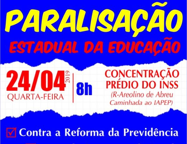 Em defesa da valorização e contra a reforma da Previdência de Bolsonaro, a Educação irá parar no dia 24