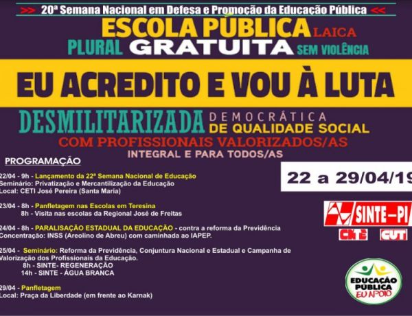 • SINTE-PI REALIZA LANÇAMENTO DA SEMANA NACIONAL EM DEFESA DA EDUCAÇÃO PÚBLICA