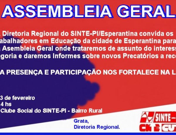 • SINTE-PI CONVOCA MANIFESTAÇÃO DIA 26/02 NA ALEPI