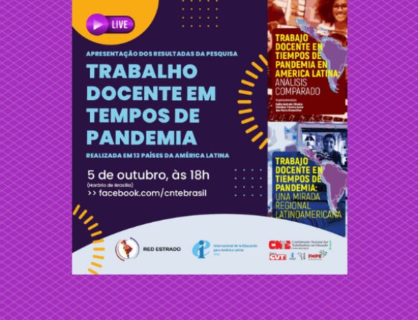 • Resultados da pesquisa 'Trabalho docente em tempos de pandemia' serão apresentados no próximo dia 5