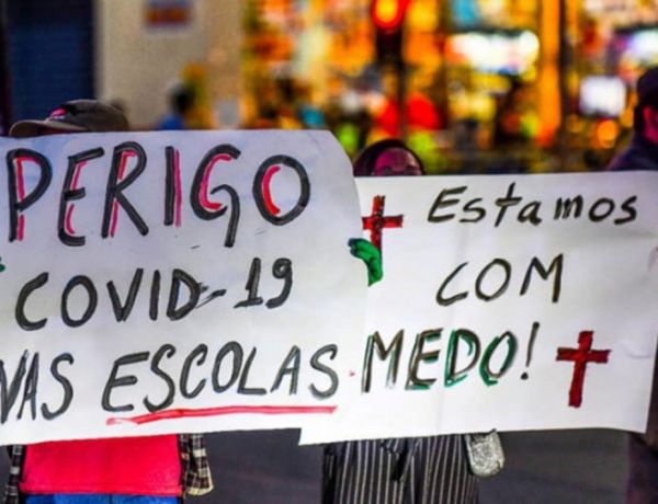 Com a bandeira “escola segura só depois da segunda dose”, movimento denunciou que a comunidade escolar está em risco por “retorno apressado”