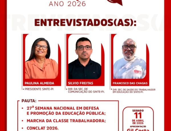 Editorial do SINTE-PI no programa "A Voz da Educação", veiculado no dia 11 de abril de 2026 na Rádio Pioneira, celebra a realização da 27ª Semana Nacional em Defesa e Promoção da Edu