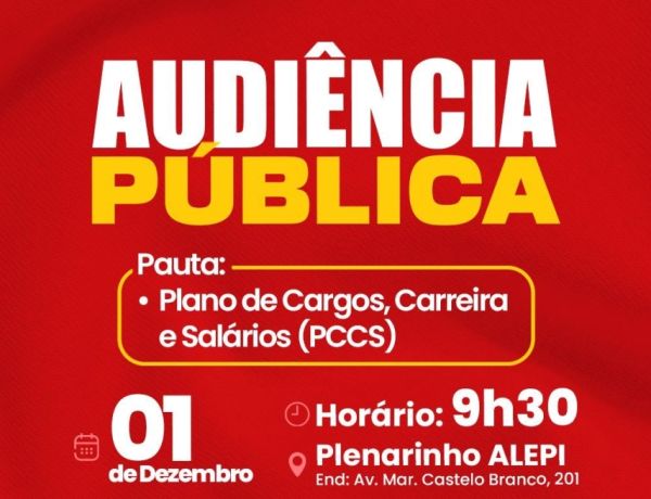 • SINTE-PI convoca trabalhadores para Audiência Pública sobre o PCCS nesta segunda, 1º de dezembro
