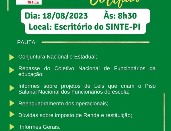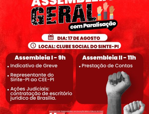 Serão duas assembleias a partir das 9h, no Clube Social do Sinte-PI