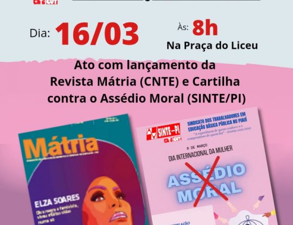 • 16M: No Dia da Mobilização Nacional da Educação, Sinte PI lança Cartilha contra o assédio moral e divulga a Revista Mátria
