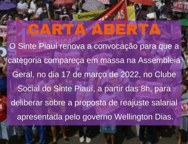 • Sinte PI convoca categoria para Assembleia Geral nesta quinta-feira (17)